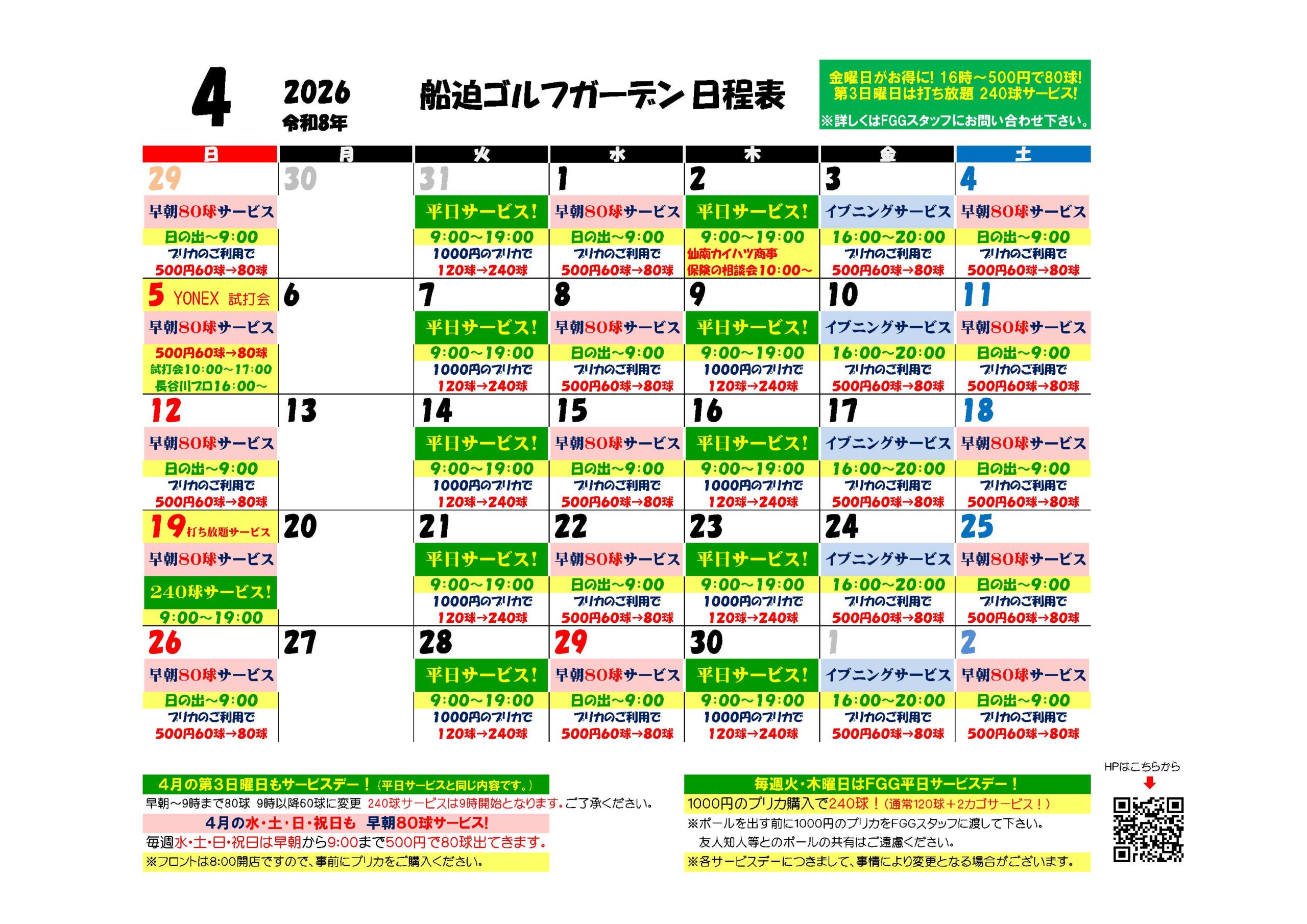 それでは、2026年4月の営業スケジュールを